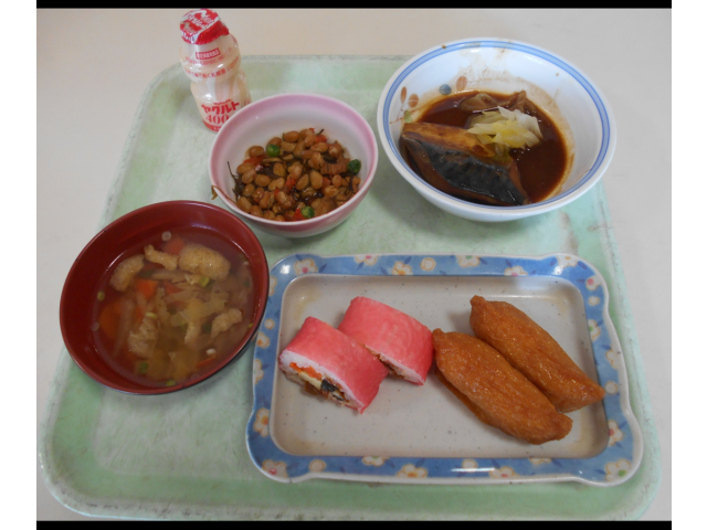 当日の昼食に助六寿司と五目煮豆、おやつには甘納豆を提供し、より節分を味わっていただきました。