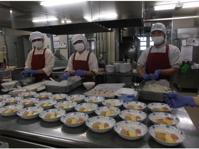 そして、10月29日には「秋祭りフィナーレ」として昼食に握り寿司を提供しました。まぐろ、サーモン、たまご、いなりなど、厨房の方が1つ1つ丁寧に握った手作りです。食形態に合わせることで、全員分提供することが出来ました。
