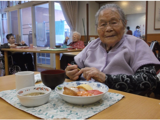 外食活動がなかなかできない中でのお寿司は格別で、入居者様からは自然と笑みが浮かびました。