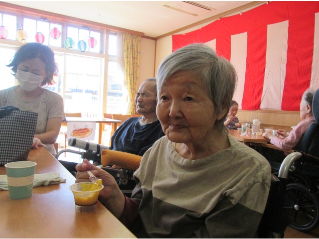 お祭りの雰囲気が満載の会場の中、好きな物を選んで召し上がる入居者様の姿は印象的でした。