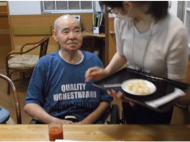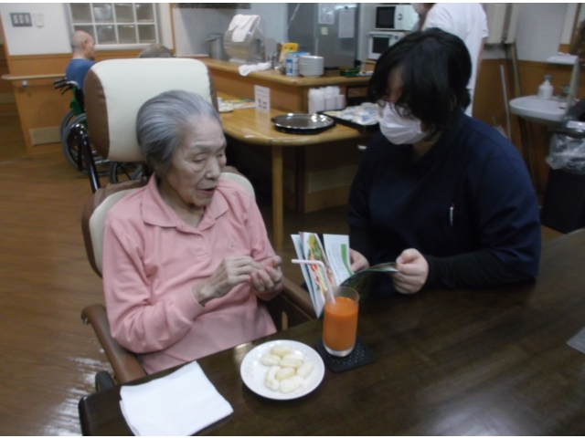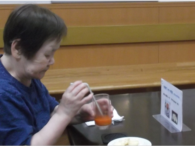 入居者様の反応も上々で、ある方は下層の甘酒を飲み、上層の野菜ジュースを飲み、最後は混ぜて3度美味しい飲み方を、またある方は、甘酒を飲み、野菜ジュースを飲むという、重力に逆らわない自然な飲み方をと、それぞれのスタイルで楽しまれました。