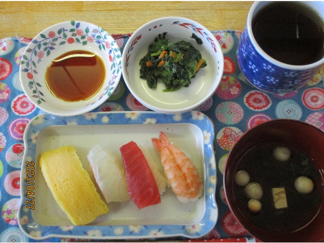 本日のお昼ごはんは、みんな大好き❤「握り寿司」です。