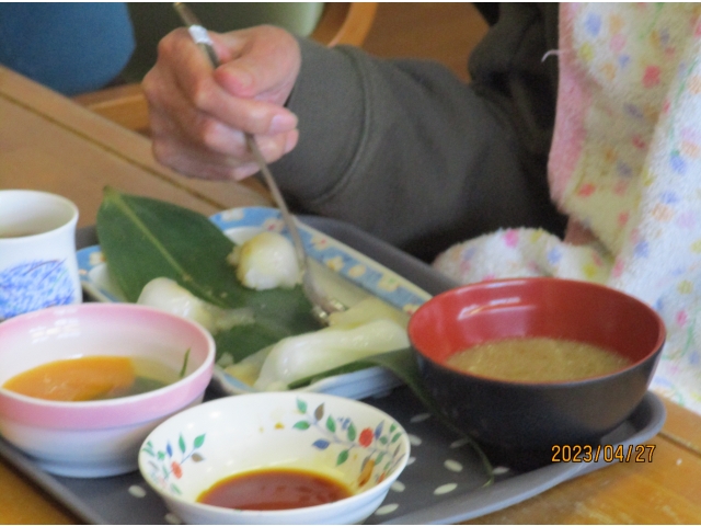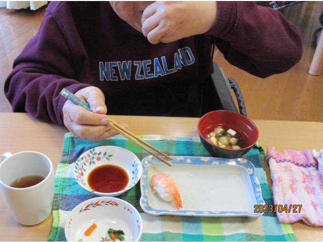 入居者様の視線は握りずしに釘付けです☺