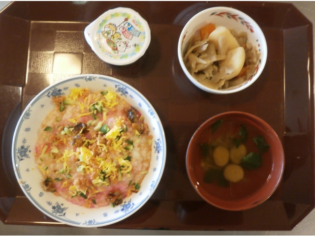 ちらし寿司🍣、すまし汁、田舎煮、デザート✨を提供しました。