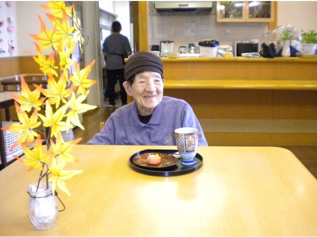 9月は敬老の日👵👨🦳 秋分の日🍂🌰がありました。敬老の日の献立は【ちらし寿司🍣】でした❕おやつは【練きり🍵】できれいな色と飾り付けです。