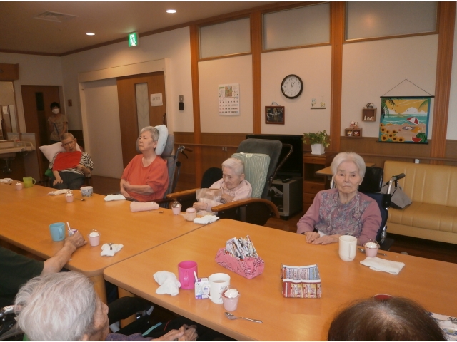 9月に入ってもまだまだ暑い日🥵が続いて秋🎑の訪れはまだ先のようです。さざんかの家では先日、誕生日会がありました🎉普段は寝て😪過ごされる方が多いこちらのユニットですが、皆さんでお祝いをし、おいしそうにムースのケーキ🎂を召し上がりました❕