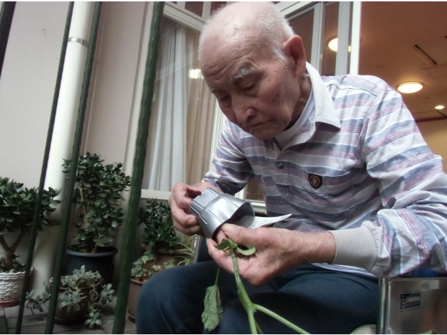 5月に入居者の方にお聞きしながら、プランターに苗を2本植えました🌱🌱