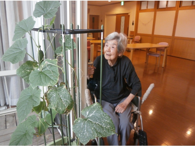 きゅうり🥒の成長を気にかけてくださる入居者の方が何名かおり、水やりをしてくれたり