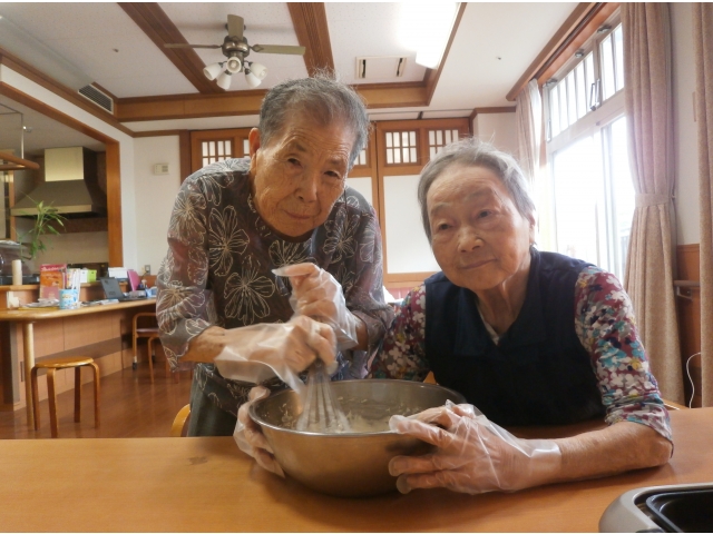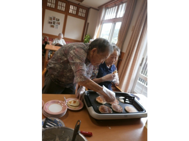 今年は梅雨に入る前から30度越えの猛暑🥵になり、散歩もなかなか行けない状況です。そんな中、皆さんとどら焼き作りをしました😄生地を混ぜる所から始め、生地をホットプレートで焼き、あんこを挟んで食べました。皆さん「美味しい」と笑顔で食べていました🥰また皆さんと一緒に美味しいものを作って食べ、夏を乗り切りたいと思います🌞