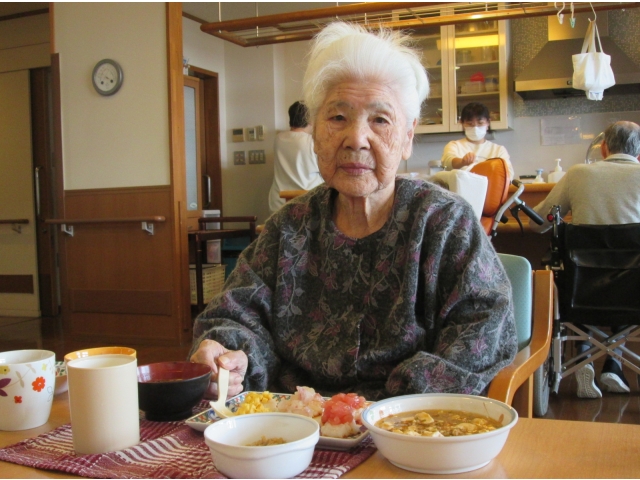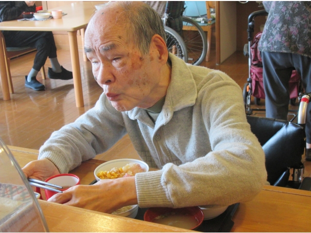 普段は小食で残しがちの入居者様も、自ら箸がすすみます。