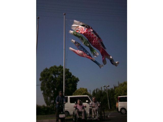 「5匹だったね」「でもおっきいねー」と鯉のぼりを眺めてお話をされ