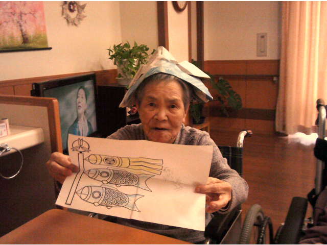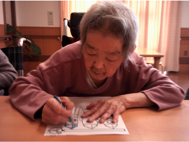 塗り絵が終わると「できたよ」と言って見せてくれました。