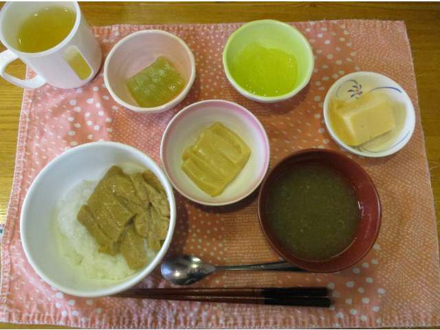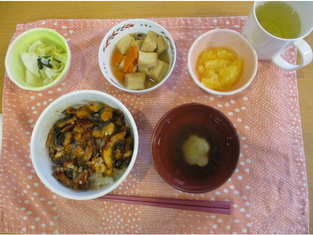 本日のリクエストは「うなぎ丼・お吸い物・漬物・くだもの」です。