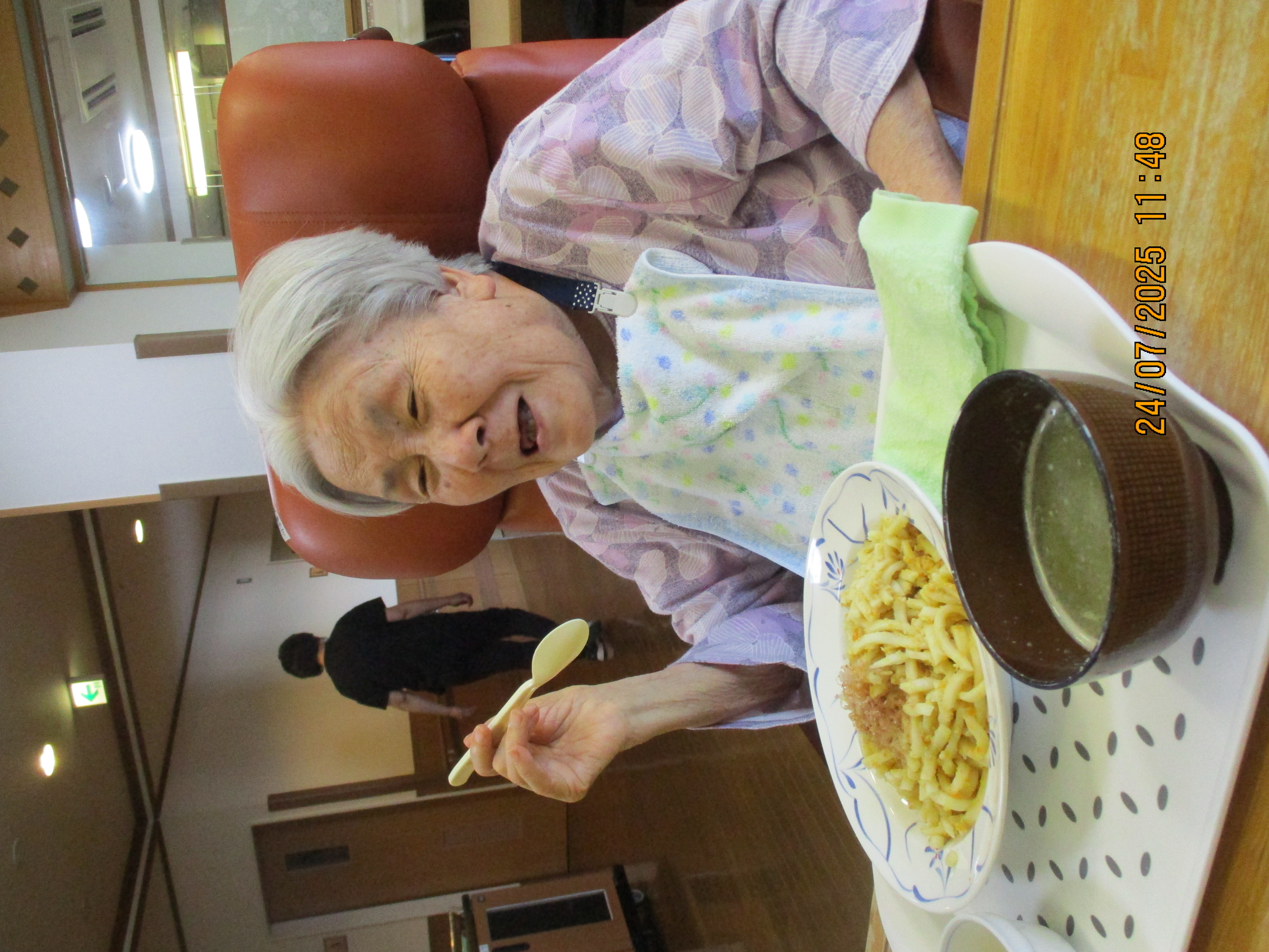 それぞれの嚥下状態に合わせて、普通食と粗きざみ食を用意しました。