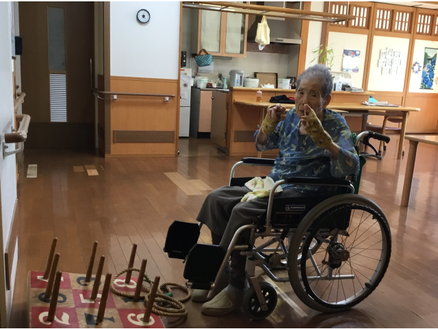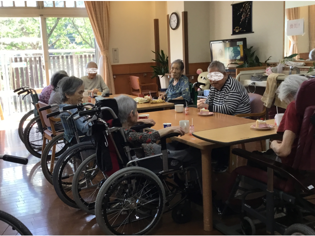 毎日毎日暑さ厳しい日が続きますね🥵お隣の県ではなんと、41℃まで上がったとか(゚Д゚…外でお仕事されてる方、本当にお疲れ様です💦 おかげさまで施設内は冷房が入り快適な温度で皆さんお元気に過ごしていただいてまーす\(^o^)/感謝感謝♥️ 今日はお誕生会を開きケーキ🎂を食べた後で輪投げ遊びをしてもらいました。