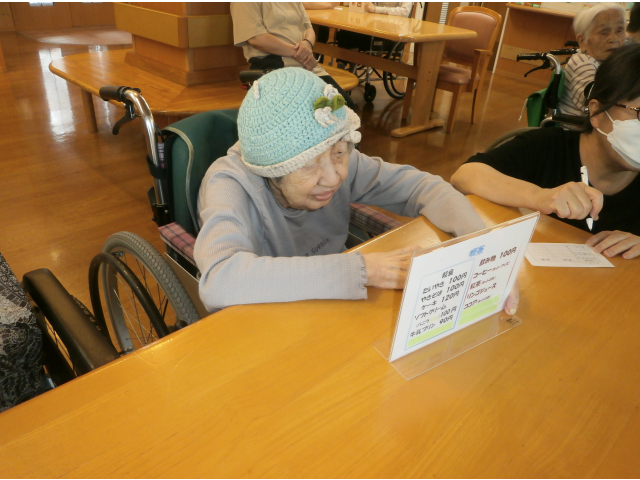 月に1度の喫茶の日☕皆さん楽しみにされています♪ まずはメニューの中から好きな物を選んで…🤔焼きそばやアイスクリームなど、メニューも豊富です🍦それぞれ選んだものを美味しくいただきました😋