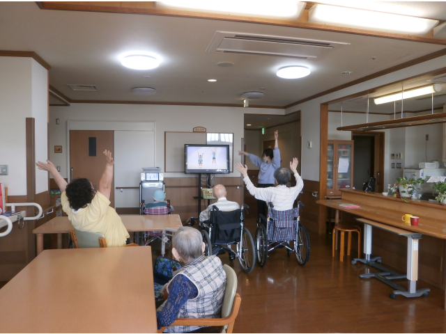 テレビを観ながらみんなで楽しく身体を動かしました☺️暑い日が続きますが、暑さに負けないように美味しいものを食べて身体を動かして皆さん元気に過ごされています🥰
