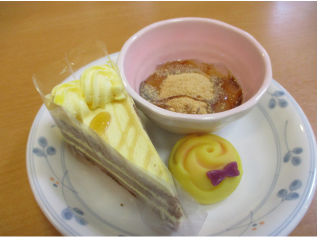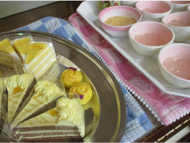 「スウィーツバイキング」は、ケーキ2種類、練り切り、ゼリー3種類、わらび餅から選びます。