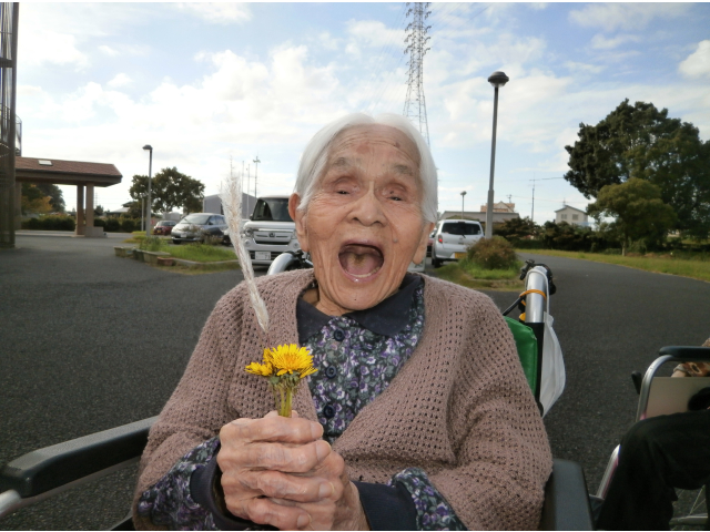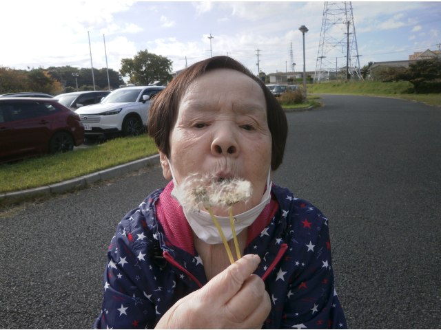 だんだんと冷え込む季節になってきました。皆様いかがお過ごしでしょうか?かえでの皆様は元気に過ごされています😊天気が良い日に散歩へ行ってきました。昼間は日差しも暖かくみんな笑顔でお散歩🌞この時期でもたんぽぽが咲いており驚きでした🌼