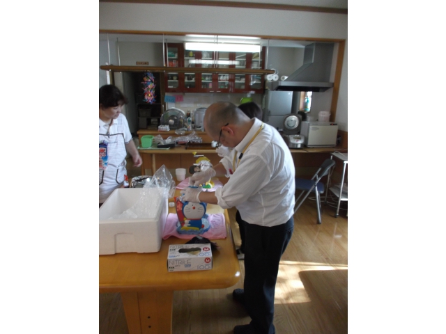 平成25年8月7日(水)に夏祭りを実施しましたが、デイサービスも8月29日(木)8月30日(金)と2日間夏祭りを行いました。 職員が準備した、かき氷やたこ焼き、チョコバナナ等をご利用者様方はおいしそうに食べてみえました。 また、ゲームコーナーでは、輪投げをしましたが、「8点に3回も入ったよ。」と嬉しそうに声を上げてみえるご利用者様もみえ盛況の内に終えることができて良かったです。