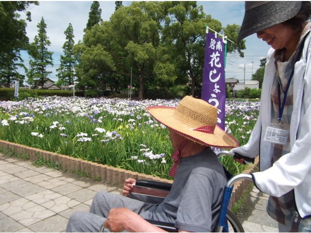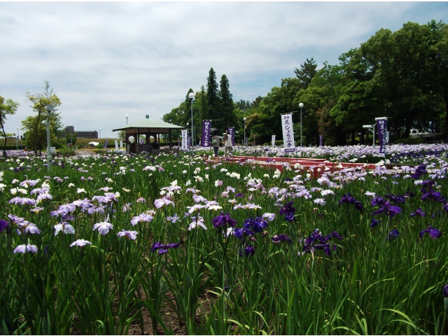 6月12、13日 碧南市油ヶ渕公園に咲いた菖蒲の花を見に行ってきました。紫色の花が一面に咲き、噴水のある公園をぐるりと散歩してきました。当日の前日まで雨の日が続いていましたが、今が見ごろの菖蒲をみなさんと一緒に楽しむことができてよかったです。