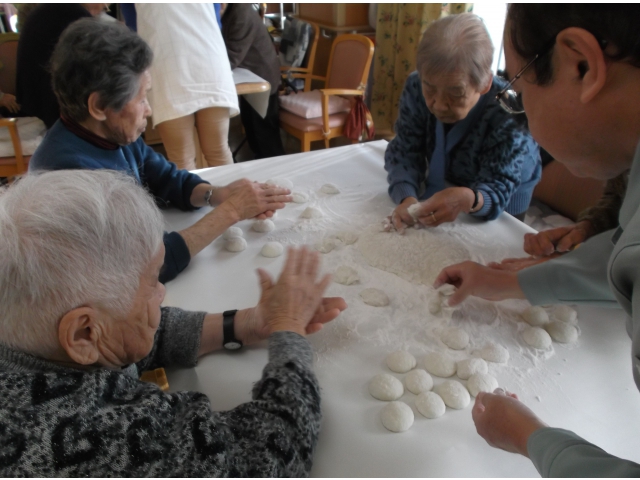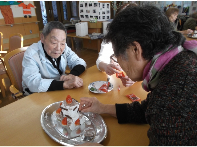 前回の「師走」でもお伝えしたように行事も目白押し。 クリスマス会ではクリスマスのケーキ、ブッシュドノエルを作りました。 テーブルごとに個性あふれたケーキができました。