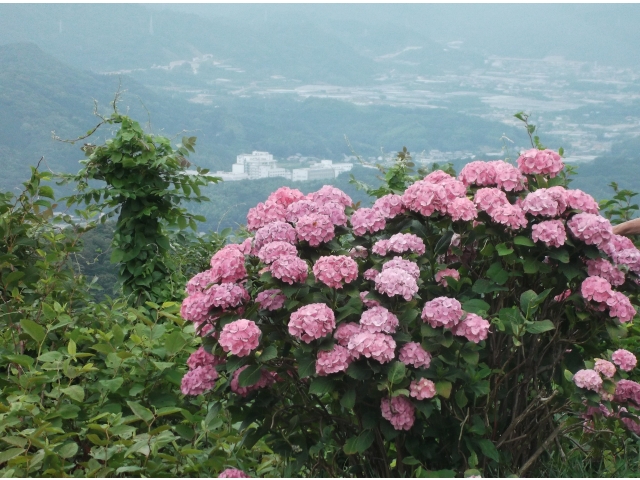 梅雨空が続く中、幡豆町の三ヶ根山に咲くあじさいを見てきました。雨露にぬれるあじさいはとてもきれいでした。三ヶ根スカイラインは5.1キロにわたり7万本のあじさいが植えられ、あじさいロードとも呼ばれているそうです。車窓から見えるあじさいの花々に皆さんからは感嘆の声を聞くことができました。