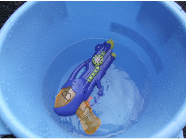 水鉄砲を手にしたとたん、みなさんの目の色が変わりました。