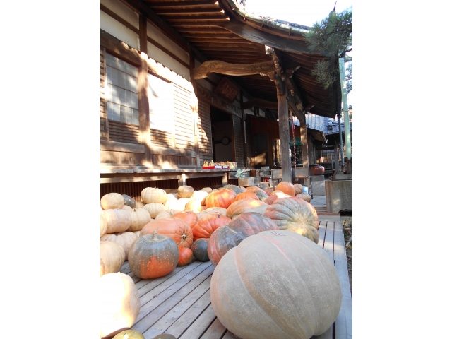 かぼちゃ寺は西尾市西幡豆にある正式には幡豆観音妙善寺というお寺です。ここでは冬になると大きなかぼちゃが数多く飾られています。「中風除け寺」とも呼ばれ、冬至の日になると全国各地から奉納されたかぼちゃで作った「かぼちゃしるこ」が振る舞われることでも有名なお寺です。みなさんも大きなかぼちゃにびっくりの様子でした。