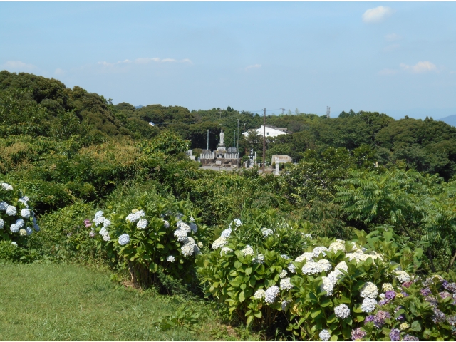 あじさいの花も素晴らしかったのですが、頂上から見える景色は格別。天気の良い日は三河湾が見渡せ、渥美半島の風力発電もはっきりと見ることができました。何よりも驚いたのは、その涼しさ。平野部ではぐんぐん気温が上がる日が続いていましたが山に入ると空気がひんやりとして、まるで避暑地に来たようでした。