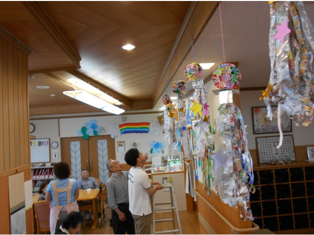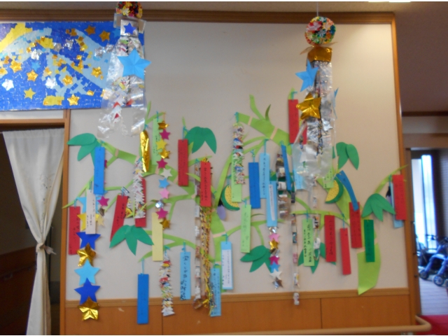 先週の金曜日は例年に珍しくお天気の良い七夕でした。今年もデイサービスではこの日のために毎日コツコツと準備を整えてきました。