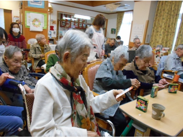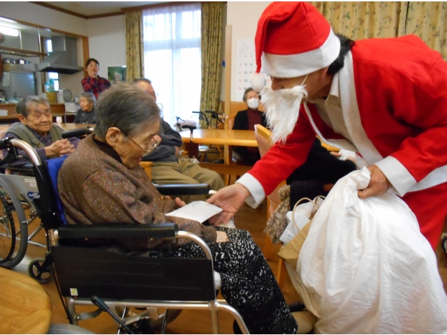 サプライズゲストのサンタさんには、去年からデイサービスを利用された男性利用者様は「生まれて初めてサンタを見たぞ」と大喜び。ビンゴ大会でも、1等賞目指してみんなで夢中になりました。