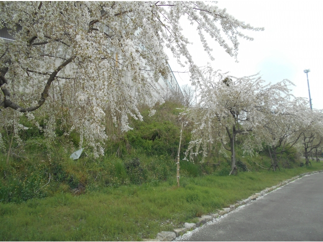 まずは浅井の枝垂れ桜、白い枝垂れ桜がずらりと並んだ隠れたお花見スポットです。