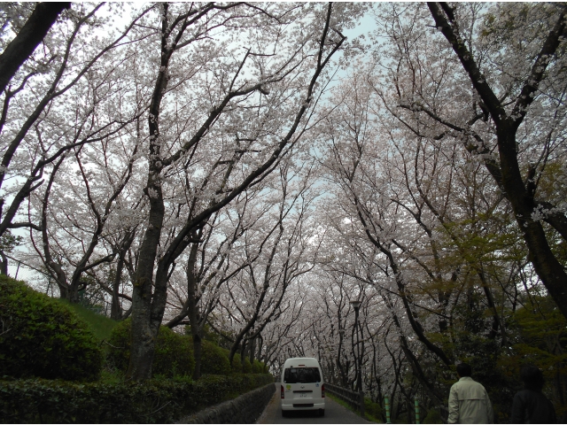 続いて、八ツ面山。西尾苑のすぐそばにある小さな山ですが、季節になると山のてっぺんが桜色に変わります。急斜面を車の上っていくと、大きな桜のトンネルが。みなさんそこを通ると大きなため息とともに「最高だ!」上から桜の花びらを落ちてきて車の窓にはりつきます。「近くに住んでるけど、初めてきたよ」という方も。