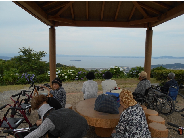 あいにくのお天気が続いていたのですがデイサービスのお出かけの日には三河湾がすっきりと見渡せるお天気になりました。みなさん口をそろえて「日頃の行いがいいからね」と笑っていました。