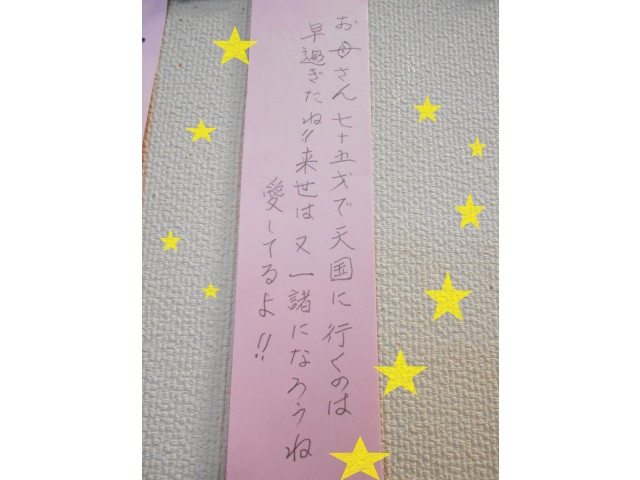 『お母さん、75才で天国に行くのは早すぎたね。来世はまた一緒になろうね。
