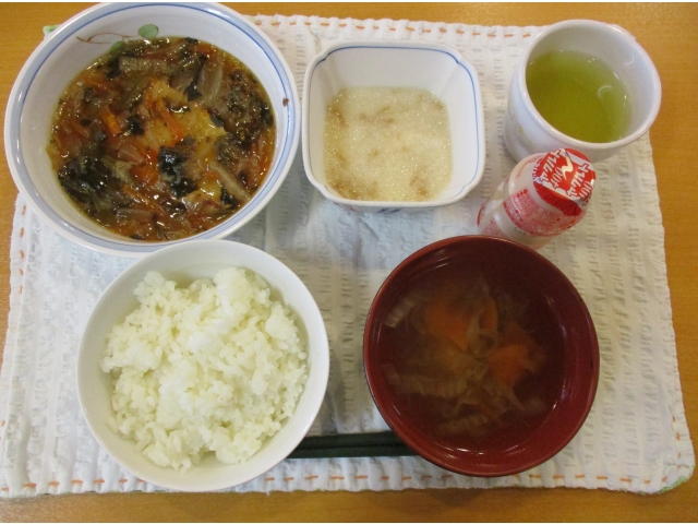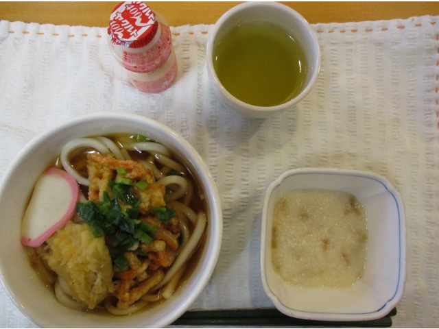 火曜日は選択食です。 Aメニュー・かじきの野菜あんかけ・とろろなめ茸和え・具だくさん汁・ご飯・ヤクルト Bメニュー・かき揚げうどん・とろろなめ茸和え・ヤクルト