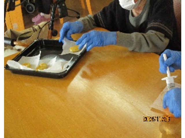 ゆでたさつま芋を裏ごしし、はちみつ、砂糖、牛乳、バターを入れよく混ぜます。楕円形にして卵でコーティング、オーブンで焼いて出来上がり。アツアツを食べました。皆さん気ごころ知れた方ばかり仲良く協力して作りました。甘さもちょうど良よく出来上がりました。