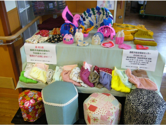 西尾市の作品展とバザー(11/14~15)に出展してきました。 プレ出展と題して苑内で展示すると、外部の方や職員から 「売って下さい!」との声が多々あり大好評でした。