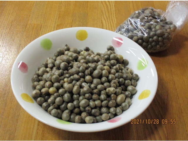 西尾苑の中庭でコツコツと収穫した“むかご”がたまったので、ご飯に入れて炊いてほしいとのこと。