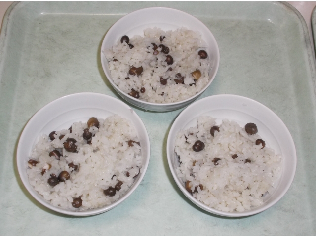 早速、厨房さんにお願いして、むかごごはんを炊いてもらいました。
