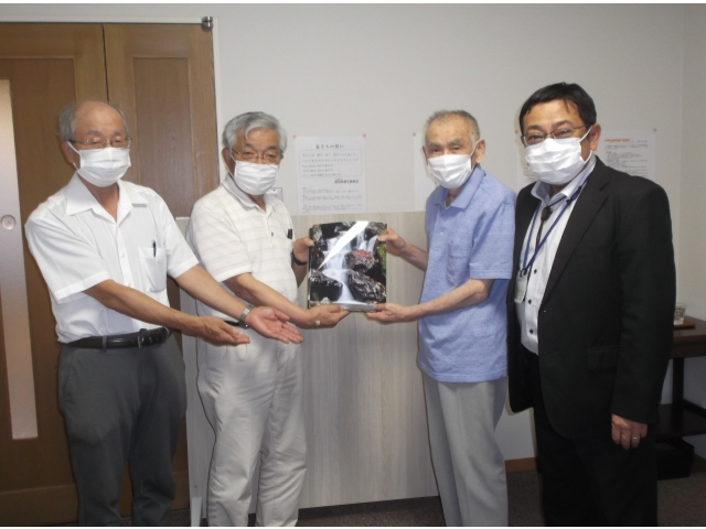それを記念して、中日写真協会西尾支部方が写真寄贈に来てくださいました。コロナ禍になるまでは、写真を食堂スペースに並べて入居者様の皆様と懇談会がありました。しかし、今回は苑長と入居者様1名が代表して受領し、後日入居者様に気に入った写真を選んで配ることとしました。