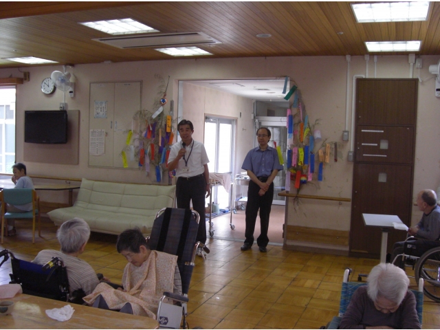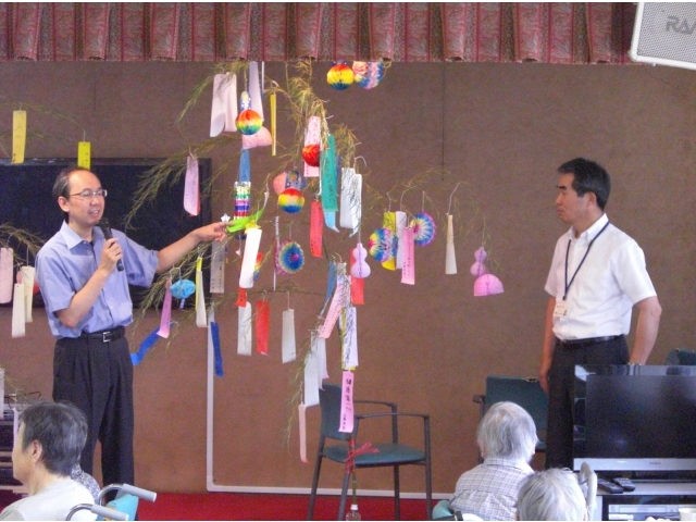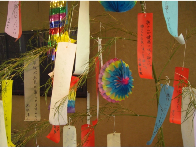 7月4日(水)に七夕会を実施しました。 昼食の時間を利用し、短冊に書かれた願い事を読み上げました。 「おいしいごはんが食べたい」「健康でいたい」など それぞれの願い事が叶うといいですね!