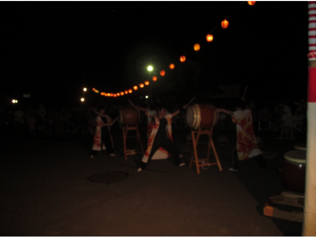 石ヶ瀬太鼓の迫力ある演出と老若男女入り乱れての盆踊りに、利用者の中には昔を懐かしむかのようにリズムをとっている方もみえました(8分音符)