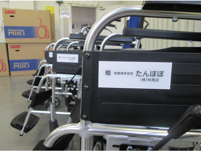 株式会社林商店様(移動理美容たんぽぽ)より車椅子の寄贈がありました。 おろしたての5台の車椅子は乗り心地も良く、また施設及び利用者様にとっても必要不可欠なものであり大変助かります。 今回寄贈していただいた車椅子は施設を利用される方のために活用していきます。 株式会社林商店様、ありがとうございました!毎月、移動理美容に来苑していただいているスタッフの皆様、ありがとうございます!これからもよろしくお願いします!