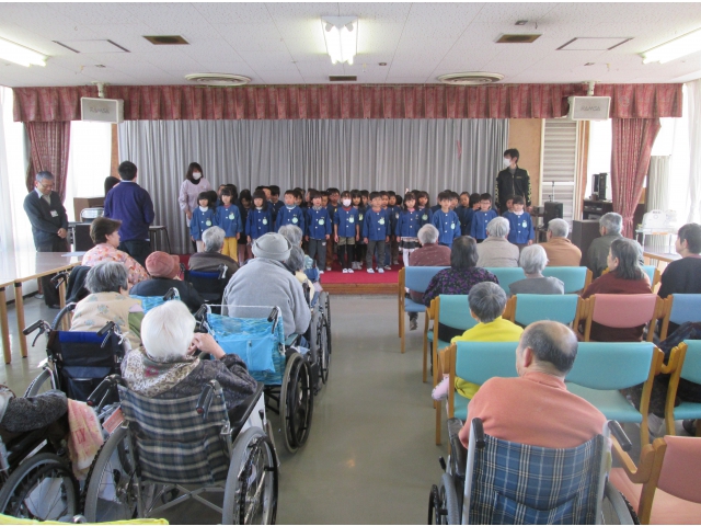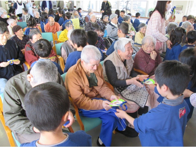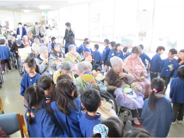 お別れの際には手作りプレゼントのサプライズが(8分音符)この慰問を最後に、来年度から小学生になるので今回でお別れですとアナウンスされると、利用者様の中には涙を浮かべて見送る姿も見られました。