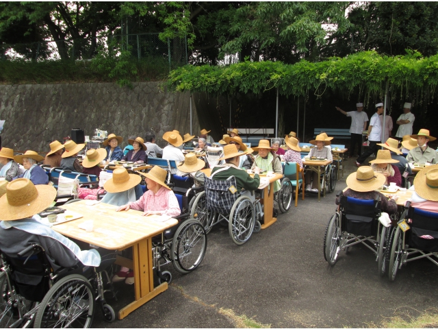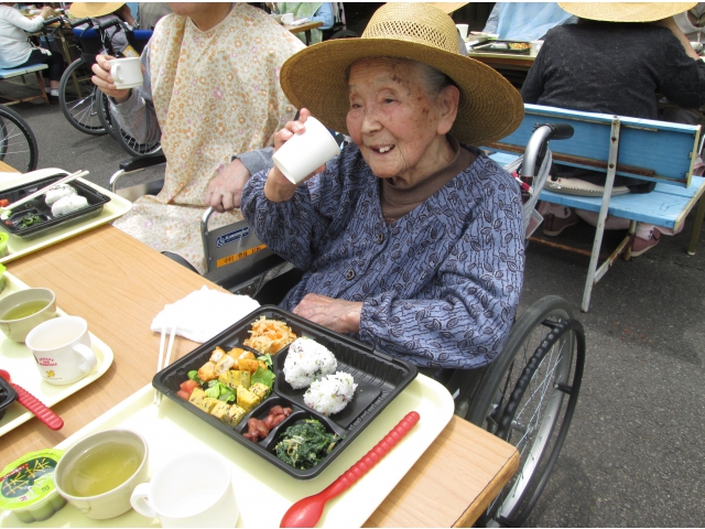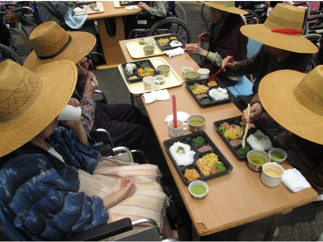 5月度の行事として、去る14日(水)の昼食時に大府苑中庭にて、爽やかな陽気に包まれながら屋外での食事を楽しみました!