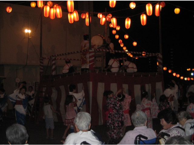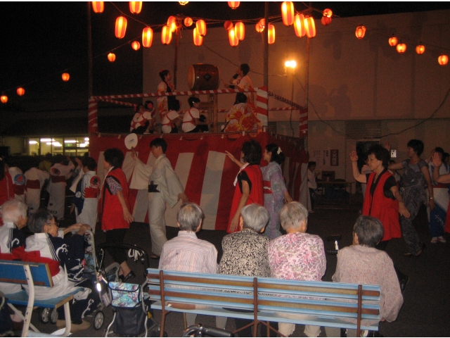 利用者様も「太鼓」「やぐら」「ちょうちん」「浴衣」にハイテンション(上矢印)(上矢印)