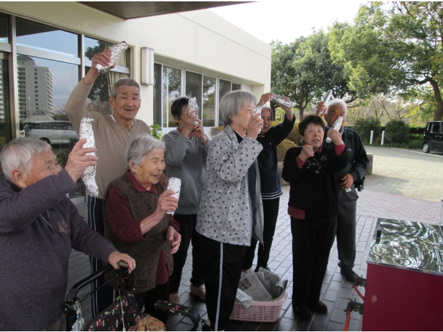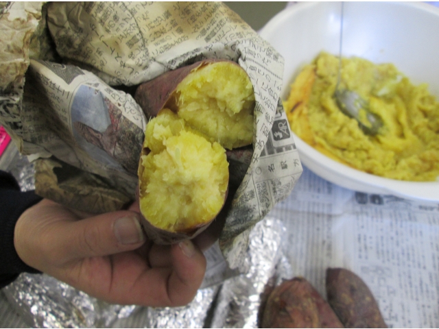 12月4日(金)のおやつは、石焼きいもでした。大府苑の菜園で収穫されたものとボランティアさんからいただいた、たくさんのさつまいもを、朝から焼きいも機で焼き上げました。