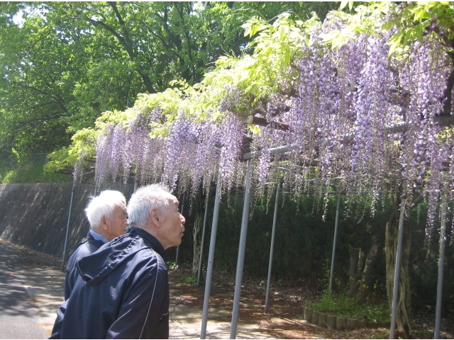 機能訓練では、一周500Mの外周コースを10分程度で回りますが、大府苑自慢の藤の花を見ながらの訓練となり、20分近くかかってしまいました。こんな日がたまにはあって良いですね~